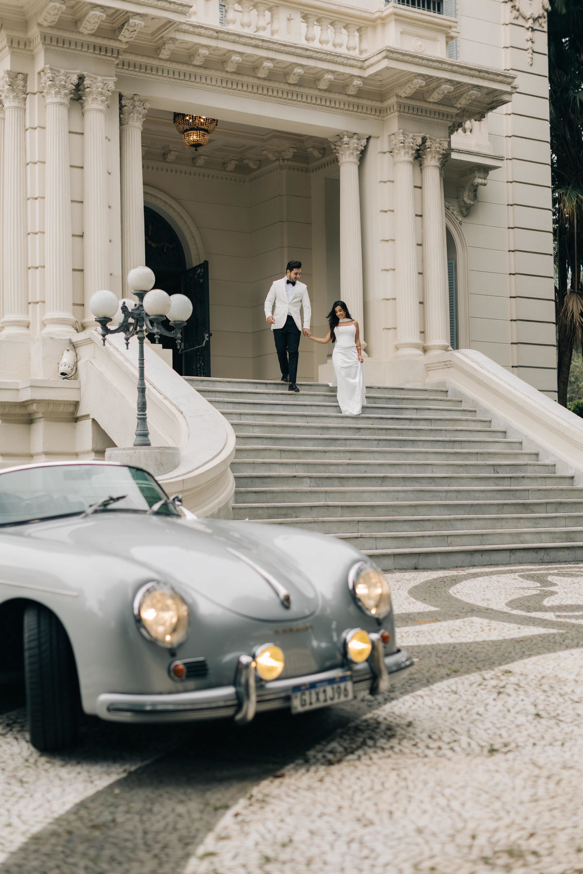 A escolha desse estilo foi quase intuitiva. Um carro icônico, uma locação imponente, uma estética atemporal, mas tudo com leveza, com toque, com verdade.